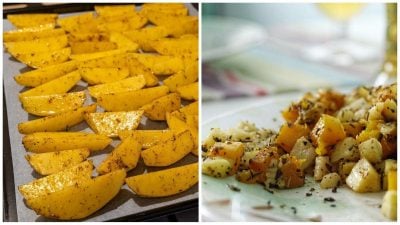 Jeden produkt výborně absorbuje vlhkost z povrchu brambor a po zahřátí je pomáhá karamelizovat.